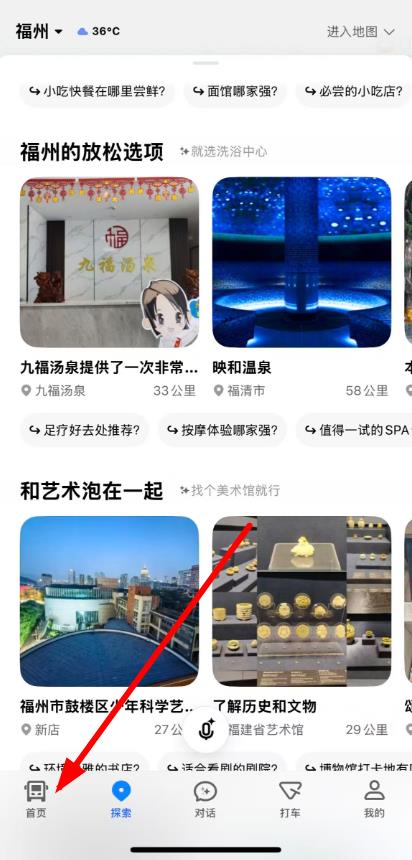1、打開高德地圖APP點(diǎn)擊底部導(dǎo)航欄首頁選項(xiàng),進(jìn)入首頁界面。