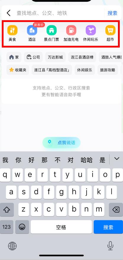 2、在首頁搜索欄下方點(diǎn)擊美食或酒店按鈕,進(jìn)入對應(yīng)搜索界面。