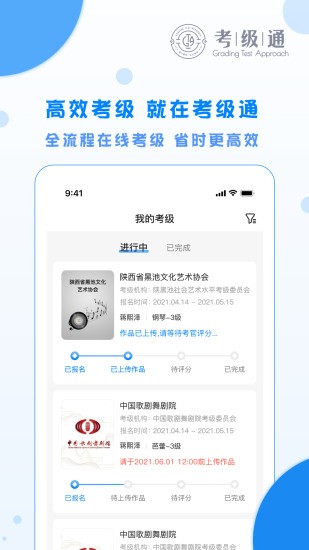 藝術(shù)考級saas平臺考級通app安卓版提供音樂、美術(shù)、舞蹈、曲藝、戲劇等考級服務(wù),支持在線報名,線上線下服務(wù)全面,可以在線進行練習(xí),可以查找考級的機構(gòu),可以查看自己的考級和練習(xí)作品,歡迎有需要的朋友下載使用!