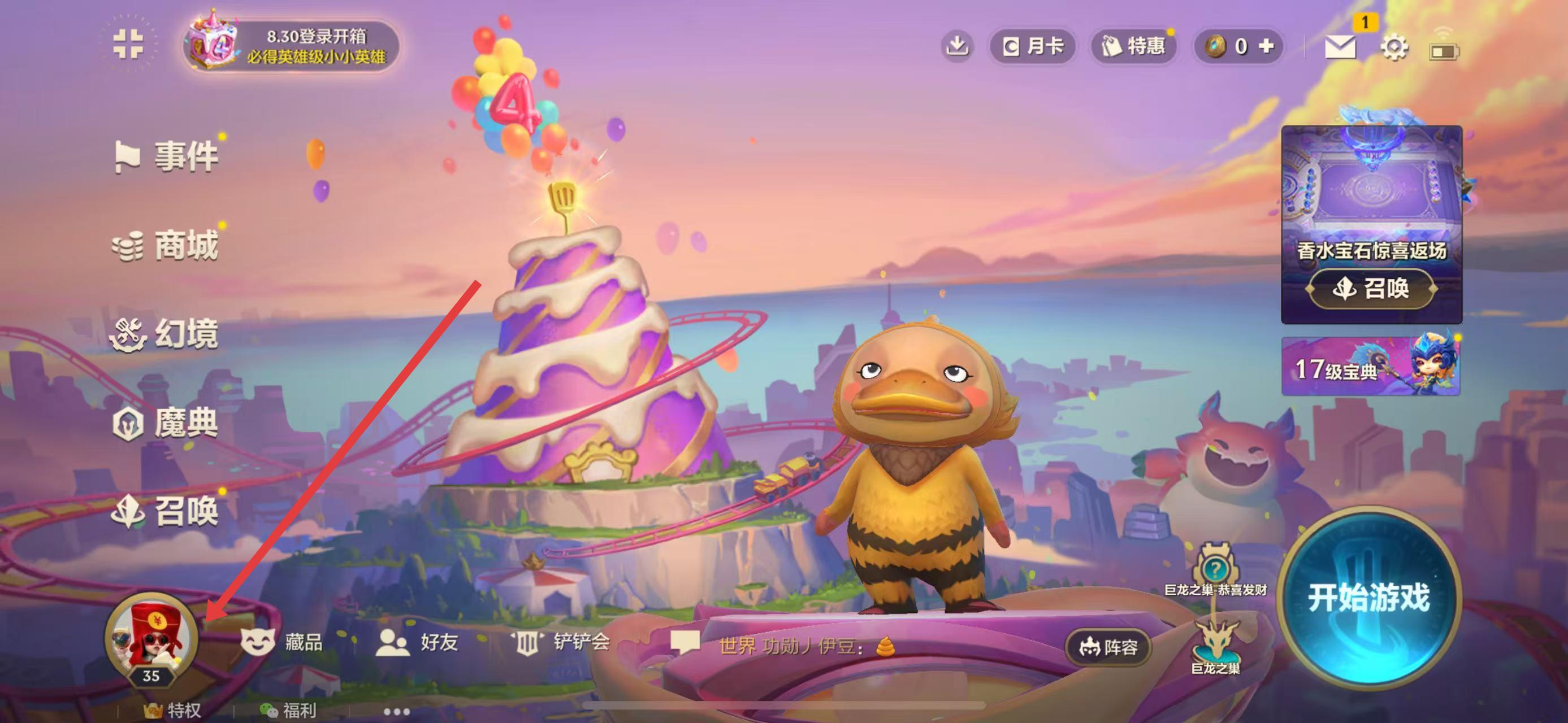 1、打開金鏟鏟之戰(zhàn)游戲,進入主界面,點擊左下角的個人頭像,進入生涯界面。