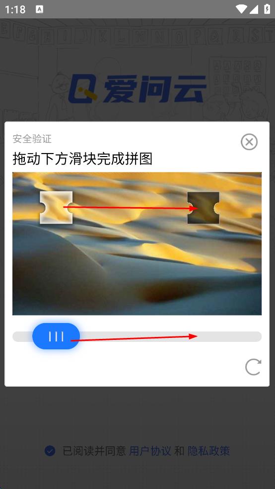 4、完成安全驗證后,點擊“登錄”按鈕,即可成功登錄愛問云APP。