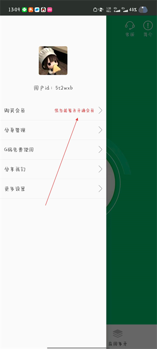 2、在彈出的側(cè)邊菜單中,點擊購買會員選項。