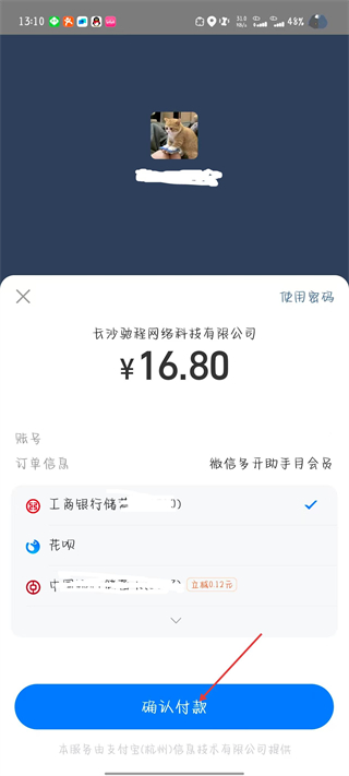 4、在支付頁面,選擇具體的支付方式,然后點擊確認(rèn)付款。