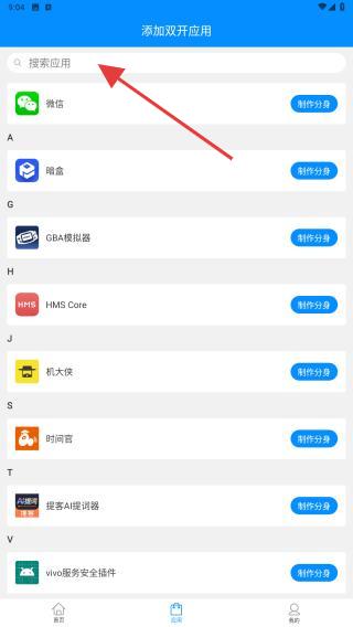 2、在添加雙開(kāi)應(yīng)用的頁(yè)面內(nèi),點(diǎn)擊搜索應(yīng)用的輸入框。