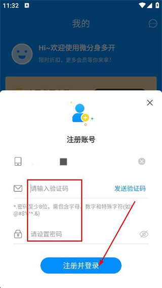 4、輸入驗(yàn)證碼、設(shè)置密碼,點(diǎn)擊注冊(cè)并登錄即可登錄。