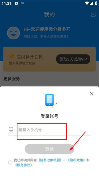 3、在彈出的窗口,點(diǎn)擊輸入框輸入手機(jī)號(hào),點(diǎn)擊登錄。