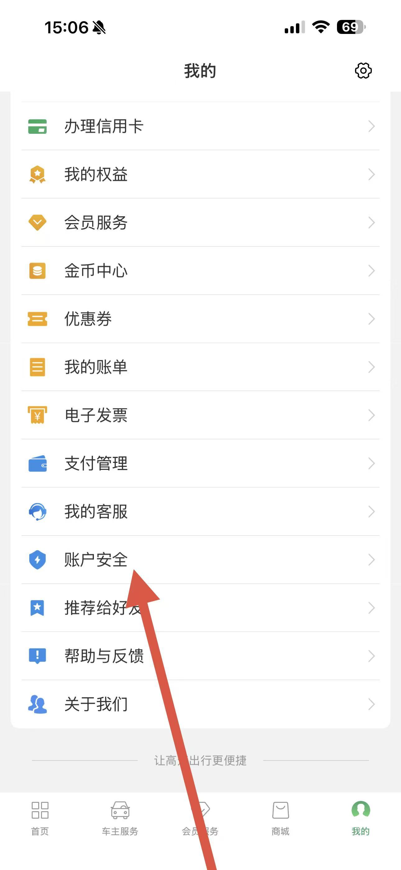 2、在個人頁面中,找到并點擊賬戶安全選項,進(jìn)入賬戶安全設(shè)置界面。