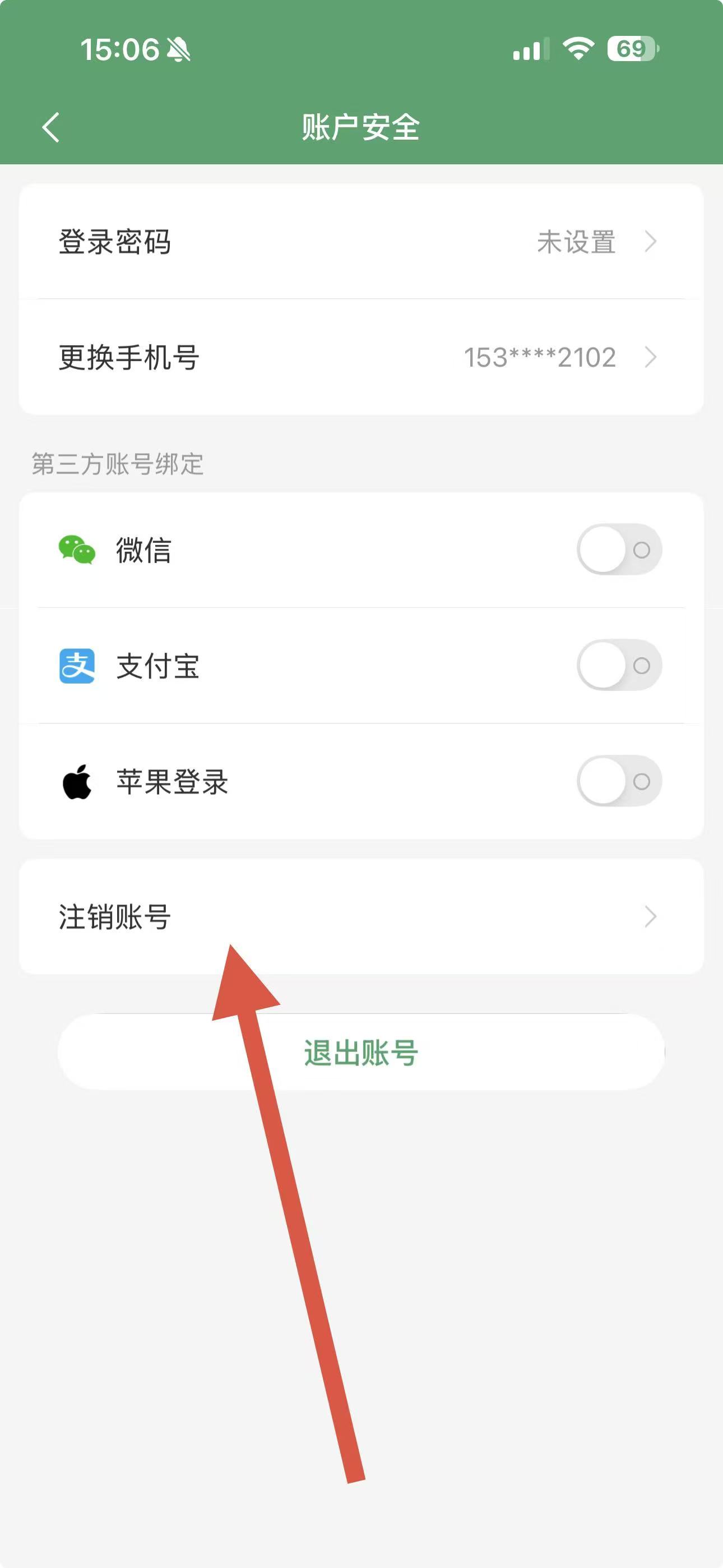 3、在賬戶安全界面里,點擊注銷賬號選項,進(jìn)入注銷賬號提示頁面。