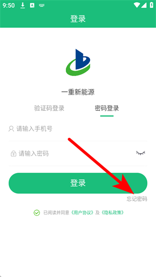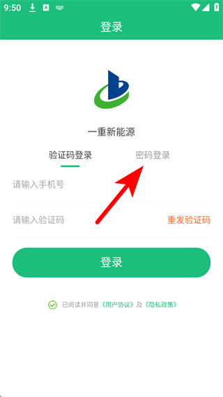1、打開(kāi)中國(guó)一重新能源APP登錄頁(yè)面,點(diǎn)擊密碼登錄選項(xiàng),切換到密碼登錄界面。
