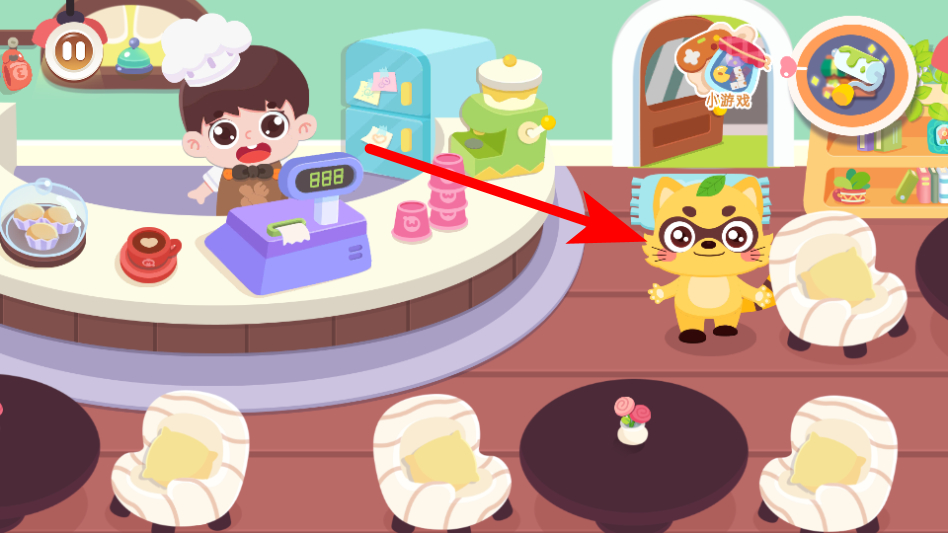 2、當(dāng)有顧客如小浣熊進(jìn)入咖啡店時,準(zhǔn)備為其提供餐品服務(wù)。