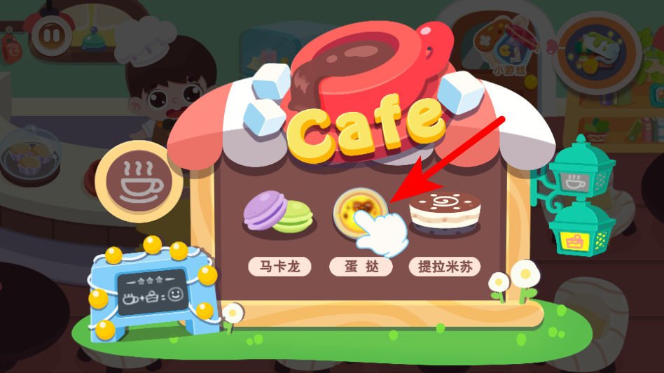 4、若顧客需要甜點(diǎn),在甜點(diǎn)菜單中選擇馬卡龍、蛋撻、提拉米蘇等,為顧客提供餐品,經(jīng)營好咖啡店。