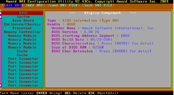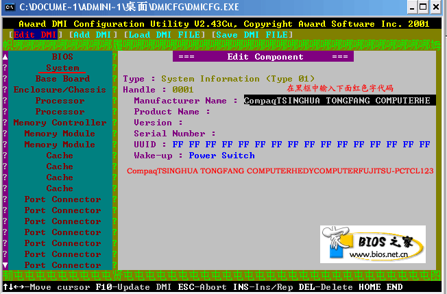 DMICFG是一款非常實(shí)用的BIOS DMI數(shù)據(jù)修改工具,用DMICFG來(lái)修改BIOS,安裝聯(lián)想OEMXP,修改后不用刷新BIOS,方便實(shí)用。有關(guān)使用方法,請(qǐng)游覽本站相關(guān)文章。使用DMICFG,建議在98-MSDOS方式下運(yùn)行