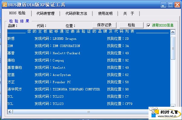 5、BIOS激活OEM版XP驗(yàn)證工具,驗(yàn)證已修改成功,可以激十種OEM XP: