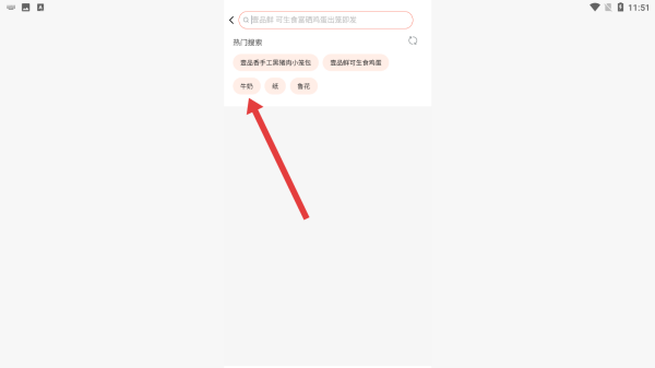 2、在搜索界面點擊熱門搜索標簽如牛奶,可以快速獲取對應商品的搜索結果。