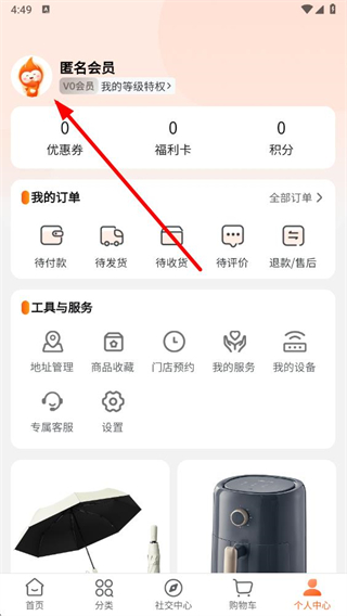 2、進入個人中心界面后,點擊頭像區(qū)域,跳轉至個人資料的編輯頁面。
