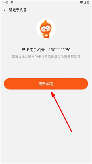 4、在綁定手機號頁面,點擊更改綁定按鈕,按照提示完成手機號更改操作即可。