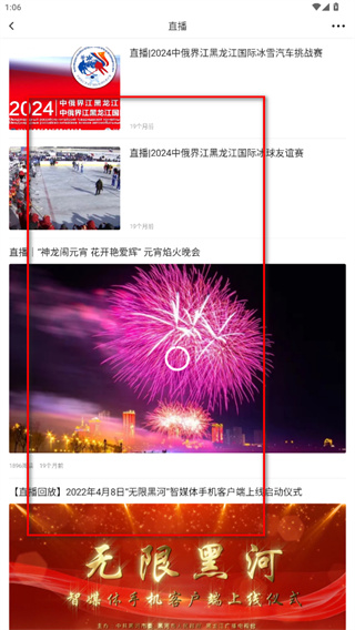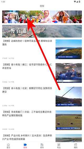 2、在視頻頁面中,找到并點擊帶有直播標識的內(nèi)容板塊,進入直播列表頁。