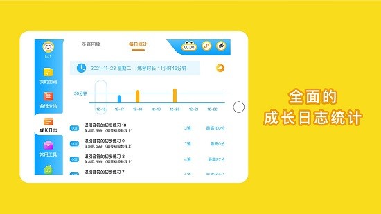 小白練琴app可以幫助用戶輕松練琴,海量的曲譜任你選擇,各種分類應(yīng)有盡有,統(tǒng)計(jì)每天的練習(xí)時(shí)間。小白練琴陪練神器還可以將練習(xí)的數(shù)據(jù)記錄下來,各項(xiàng)信息一目了然,專屬節(jié)拍器與調(diào)音器隨便用。