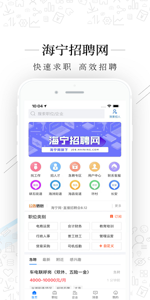 海寧招聘網(wǎng)app最新版是一個專為用戶提供的專業(yè)招聘平臺,精選好職位,豐富職位快速篩選,優(yōu)質(zhì)企業(yè)好崗位,靠譜公司高效招聘,線上求職招聘,信息一目了然,有需要的小伙伴快來下載吧。