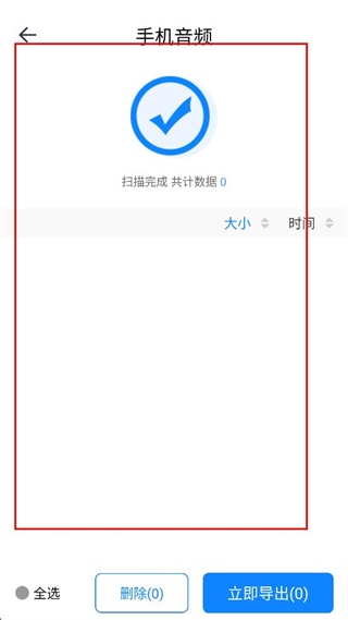 4、點(diǎn)擊手機(jī)音頻,可查看掃描結(jié)果,進(jìn)行刪除或?qū)С霾僮?,也可使用其他功能?