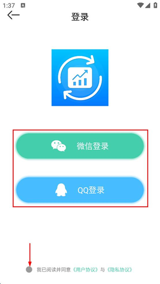 3、勾選我已閱讀并同意用戶協(xié)議與隱私協(xié)議,選擇微信登錄或QQ登錄,完成登錄。
