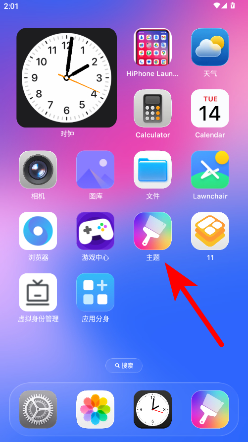 1、在手機(jī)主屏幕,點(diǎn)擊主題應(yīng)用圖標(biāo)進(jìn)入主題界面。