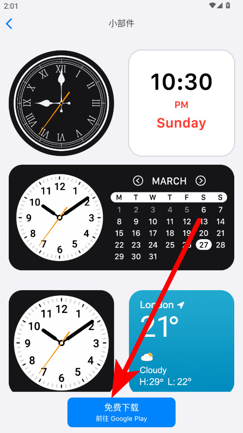 4、點(diǎn)擊所選小組件進(jìn)入詳情頁(yè)面,再點(diǎn)擊免費(fèi)下載按鈕,即可添加到主屏幕。