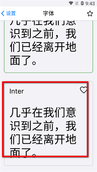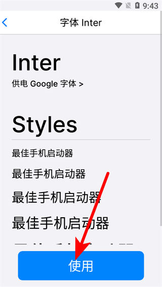 2、在字體選擇頁(yè)面,選擇想要設(shè)置的字體,如Inter字體,進(jìn)入字體詳情頁(yè)面。