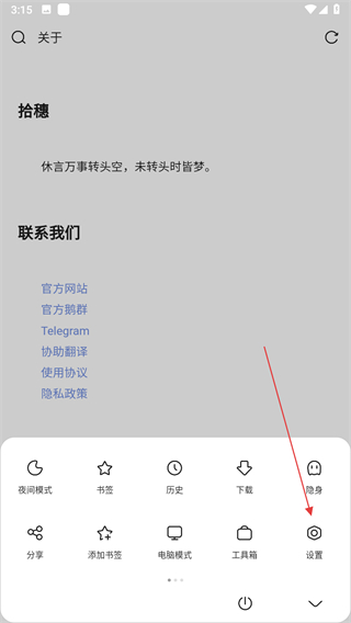 2、在彈出的菜單中,點擊設(shè)置選項,進(jìn)入設(shè)置頁面。