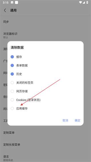 5、選擇緩存等需要清理的選項,然后點擊確定按鈕。