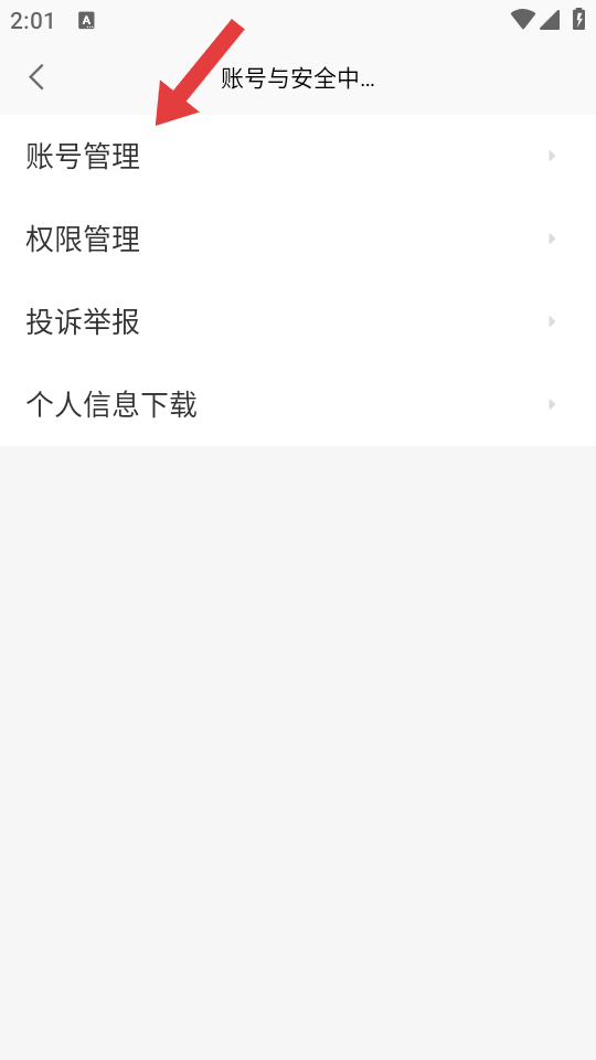 2、在賬號與安全中心的頁面中,點(diǎn)擊賬號管理的選項(xiàng),進(jìn)入賬號與安全的詳情頁。