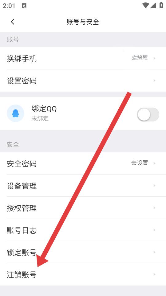 3、在賬號與安全的詳情頁中,需要找到注銷賬號的選項(xiàng)并點(diǎn)擊,按照提示完成賬戶注銷流程。