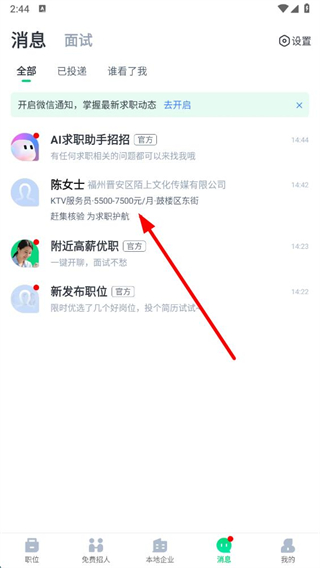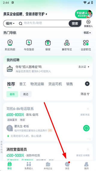 1、打開趕集招聘APP,點(diǎn)擊底部消息選項(xiàng)。