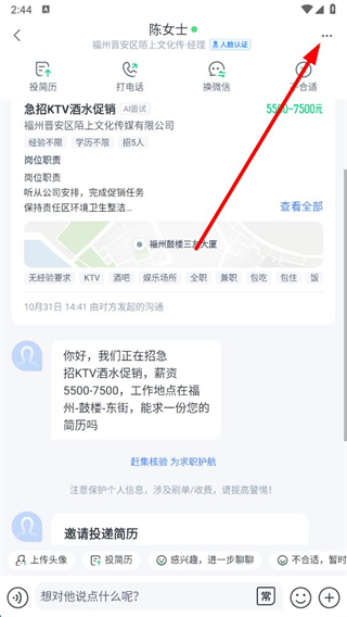 3、進(jìn)入對話頁面后,點(diǎn)擊右上角三個(gè)點(diǎn)圖標(biāo)。