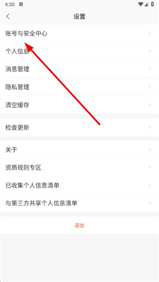 2、在設(shè)置頁面點(diǎn)擊賬號與安全中心選項(xiàng),進(jìn)入賬號與安全中心頁面。