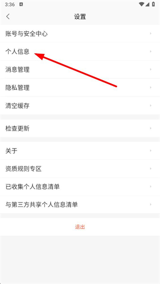 2、在設(shè)置頁面中選擇個(gè)人信息選項(xiàng),進(jìn)入個(gè)人信息界面。