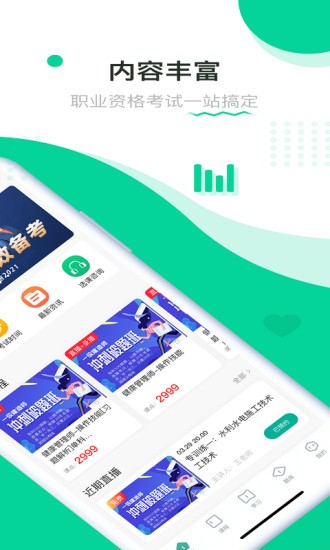 贏賦教育軟件是為用戶(hù)提供職業(yè)教育服務(wù)的應(yīng)用app,擁有豐富的課程內(nèi)容,精選好課推薦,還有優(yōu)質(zhì)老師在線(xiàn)輔導(dǎo)教學(xué),直播解答疑惑,輕松解決大家的學(xué)習(xí)問(wèn)題,更提供大量的題庫(kù)練習(xí)隨你學(xué)習(xí)鞏固,助你備戰(zhàn)考試!