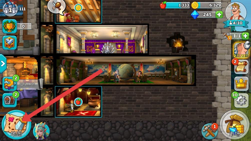1、進(jìn)入游戲主界面,點(diǎn)擊主界面左下角地圖圖標(biāo)。