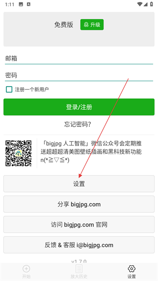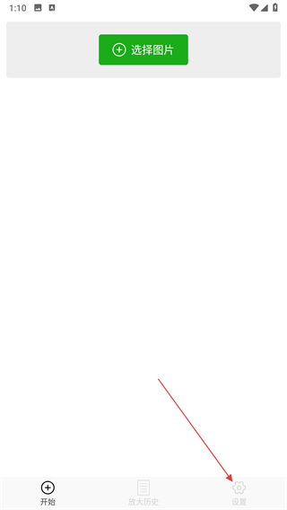 1、打開Bigjpg應(yīng)用,在主界面點擊右下角的設(shè)置圖標(biāo)。