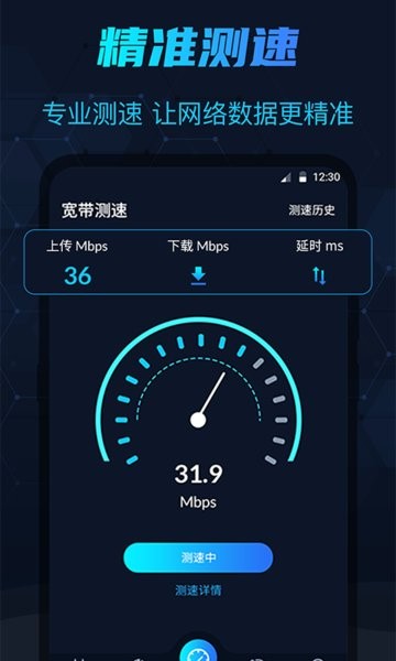 wifi測(cè)網(wǎng)速致力于為用戶提供快速專(zhuān)業(yè)的網(wǎng)絡(luò)測(cè)速服務(wù),5g測(cè)速、延遲測(cè)試、一鍵設(shè)備檢測(cè)。專(zhuān)業(yè)的網(wǎng)絡(luò)測(cè)速、寬帶測(cè)速,網(wǎng)速測(cè)速器。手機(jī)測(cè)網(wǎng)速有疑問(wèn),趕緊來(lái)用測(cè)網(wǎng)速吧,輕輕一點(diǎn)即可全面了解您的網(wǎng)絡(luò)連接狀態(tài)。