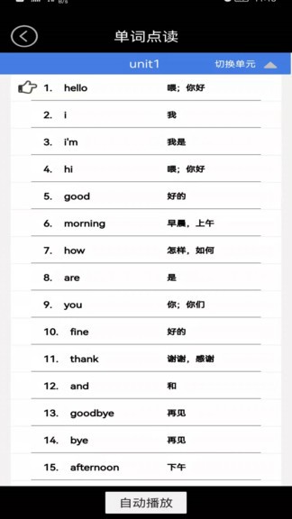 本應(yīng)用包含各年級(jí)的魯科版小學(xué)英語(yǔ)教材。提供課文點(diǎn)讀,單詞復(fù)習(xí),作文范文等各個(gè)功能。讓孩子快速入門英語(yǔ)學(xué)習(xí)。與課本結(jié)合,教材同步,方便課前預(yù)習(xí),課后復(fù)習(xí)。單詞聽(tīng)寫,增強(qiáng)記憶,能夠輕松掌握單詞、短語(yǔ)。通過(guò)課文跟讀練習(xí),練就一口流利的英語(yǔ)。讓爸爸媽媽可以輕松輔導(dǎo)孩子。