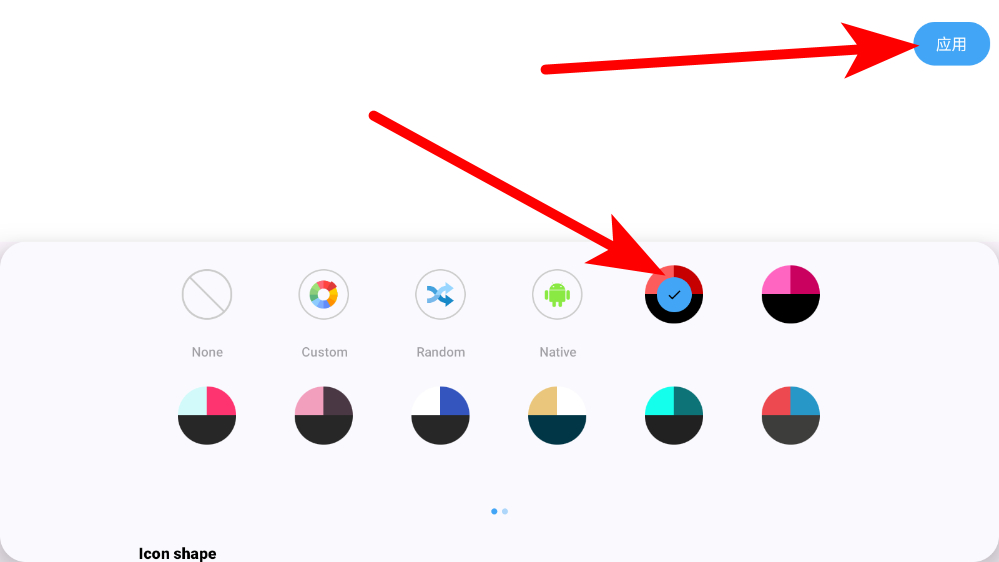 3、在圖標顏色設置頁面,選擇想要的圖標顏色樣式,選好后點擊應用按鈕。