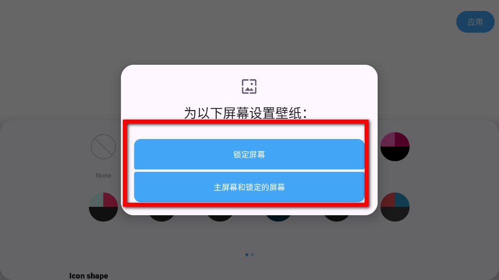 4、應用后,若有設置壁紙相關彈窗,根據(jù)需求選擇鎖定屏幕或主屏幕和鎖定的屏幕來完成后續(xù)設置。