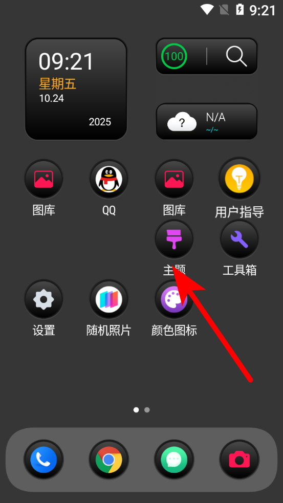 1、在安卓仿ios14主題啟動器首頁,點擊主題選項,進入主題選擇頁面。