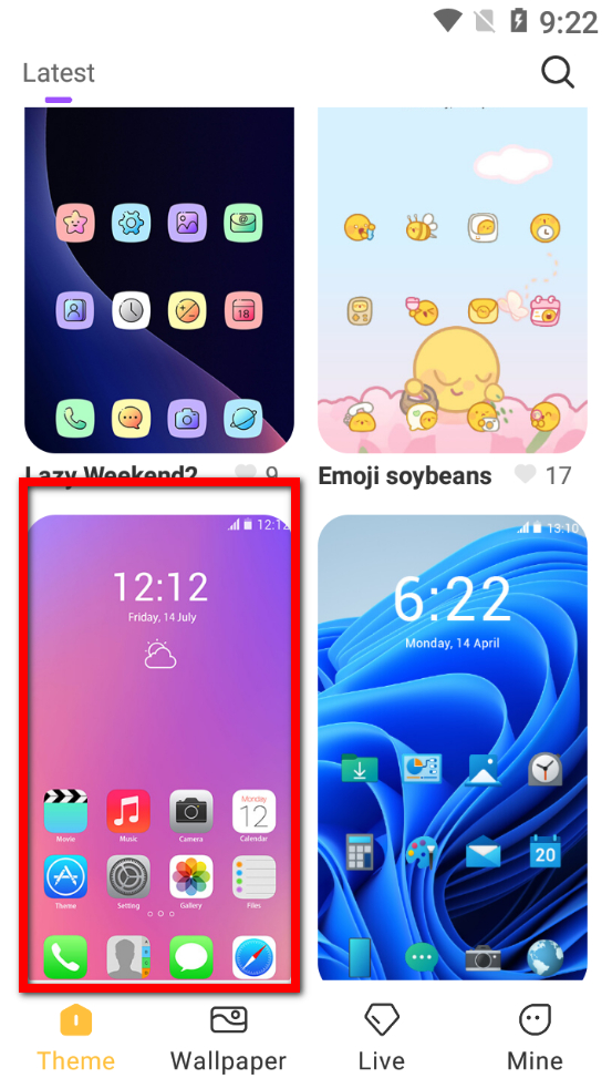 2、在主題選擇頁面,點擊想要更換的壁紙主題,進入主題詳情界面。