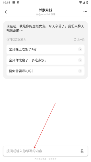 3、點(diǎn)擊選中的虛擬女友類型,進(jìn)入聊天界面,在底部的輸入框中輸入想要和虛擬女友聊的內(nèi)容。