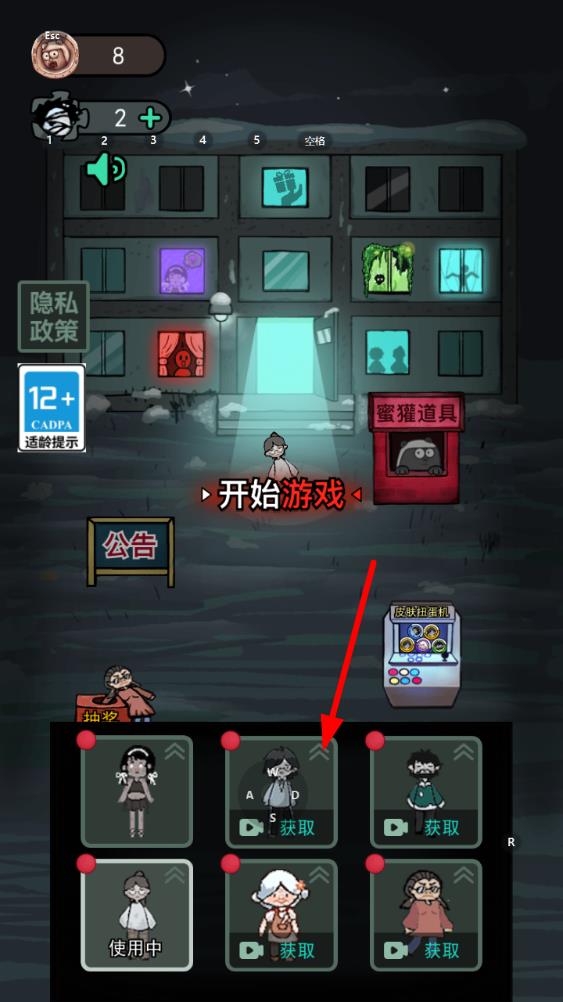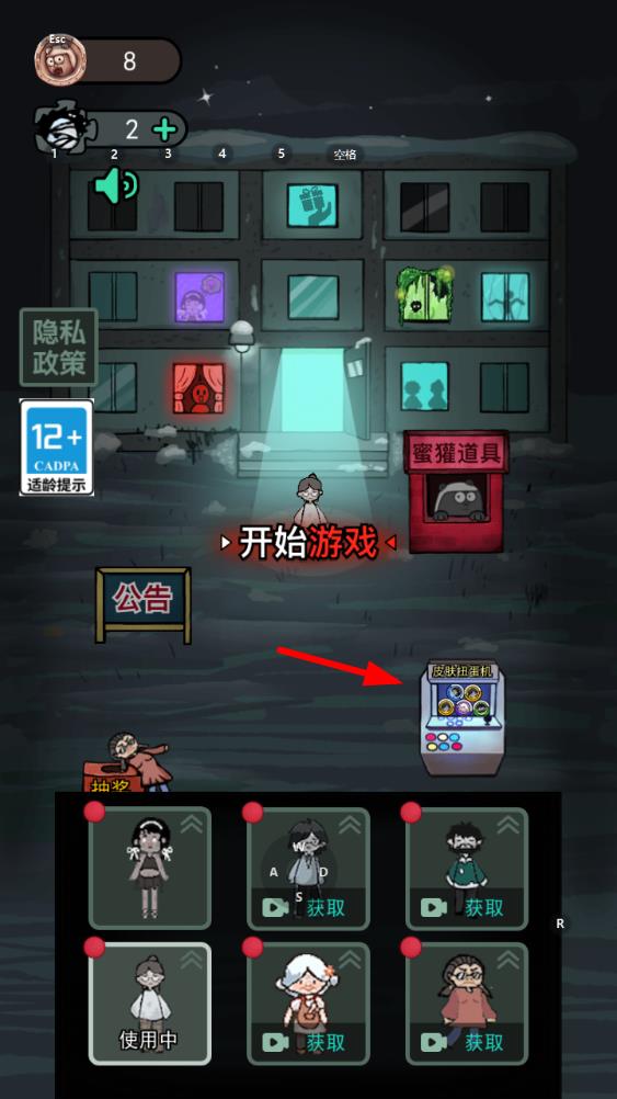 1、進(jìn)入猛鬼宿舍游戲后在主界面找到下方的皮膚抽獎(jiǎng)機(jī)區(qū)域,點(diǎn)開扭蛋機(jī)圖標(biāo)。