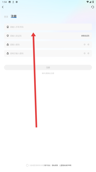 2、進(jìn)入登錄界面后,點擊頁面上方的注冊選項,切換至賬號注冊界面,準(zhǔn)備進(jìn)行新賬號的注冊操作。