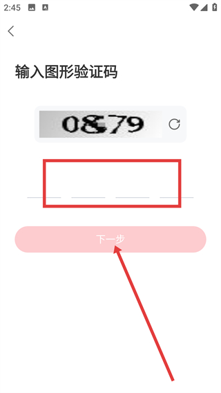 3、進(jìn)入驗證頁面,在輸入框中輸入圖形驗證碼,點擊下一步按鈕。