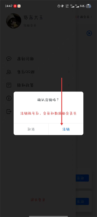 3、在確認(rèn)注銷彈窗中,點(diǎn)擊注銷按鈕。